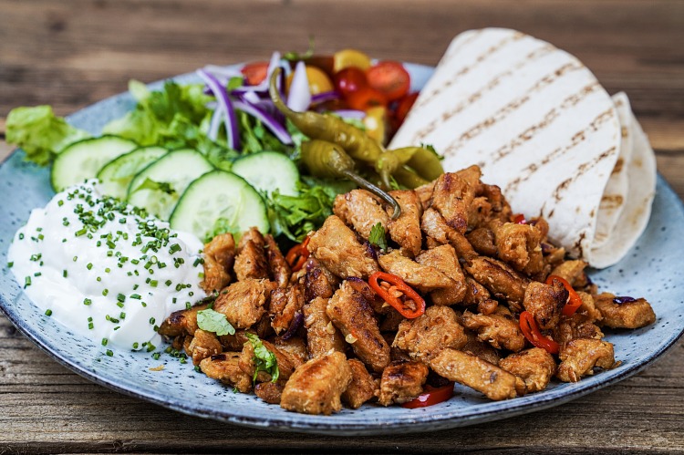 Vand, HVEDEPROTEIN, ærteprotein, rapsolie, dextrose, æblecidereddike, naturlige aromaer, salt, gærekstrakt, løgpulver, fortykkelsesmiddel (guarkernemel). Kan indeholde SOJA