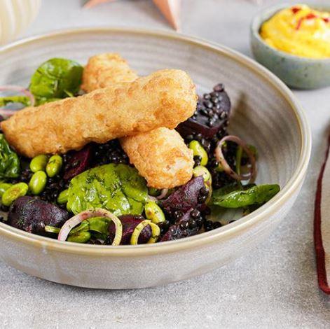 6. Bland linser med rødbeder, dild, sojabønner, porrer og babyspinat.