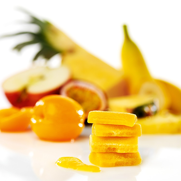 Lavet på ananas, abrikoser, æble, bananer og passionsfrugtjuicekoncentrat. Gode desserter venter. Ikke tilsat sukker.